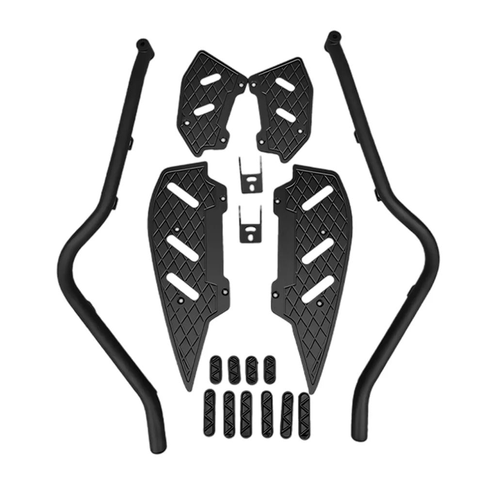 Ce crash bar XMAX 300 / 400 agit comme une barrière de protection en cas de chute à l’arrêt ou de glissade légère. Il aide à limiter les dommages sur les flancs et composants sensibles du scooter. Les repose-pieds larges et antidérapants permettent d’adopter une position plus détendue, idéale sur voie rapide ou lors des trajets prolongés.